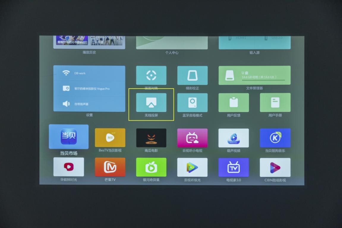 1.很多智能投影仪自带投屏工具,可以在系统应用里尝试找一下手机投屏功能。