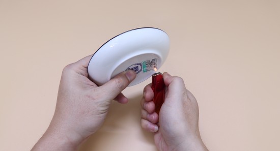 还可以用打火机把标签烘烤一下,烘烤热以后胶水就会和瓷器分离,这样去除标签也是去除的干干净净,没有残留的。
