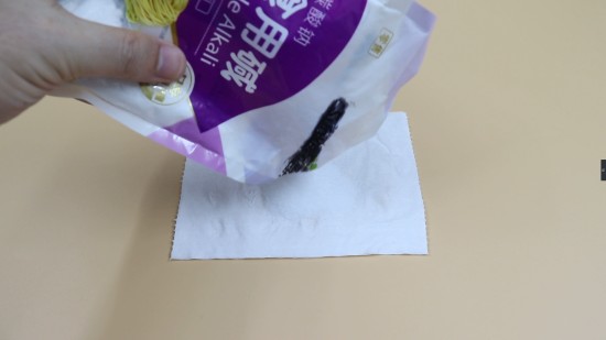 我们准备一张纸巾,在纸巾上撒入一勺的食用盐,食用盐是比较微小的颗粒,可以起到增大摩擦的作用,能够更好的清洁油桶内的油污。
