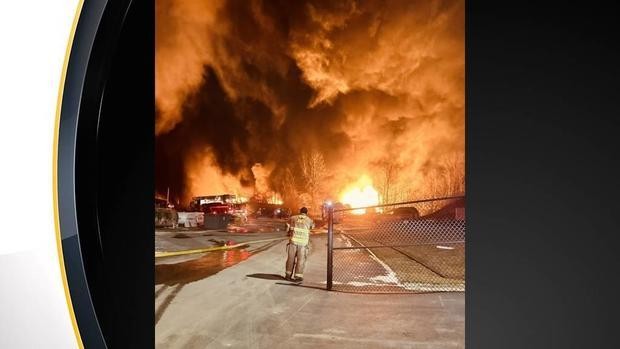 【环球网报道】综合路透社、美国哥伦比亚广播公司(CBS)等多家外媒报道,美国俄亥俄州当地时间3日晚发生一起列车脱轨事件,随后引发大火,紧急救援人员正在现场开展工作。CBS报道中的视频显示,事发现场火势很大,还有浓烟冒出。
