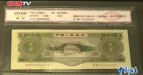 第二套人民币的三元纸币。来源:中新视频截图 杨飞 郝学娟 济南报道第三套人民币1962年开始流通,其中的“枣红一角”是指票面主体为枣红色的一角纸币,因为没怎么流通就遭到回收销毁,在今天成为收藏界的宠儿。