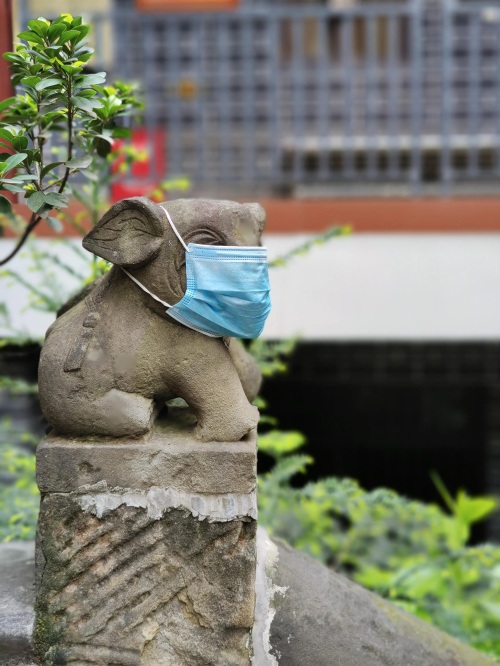 疫情期间,可爱的小象也戴上了口罩