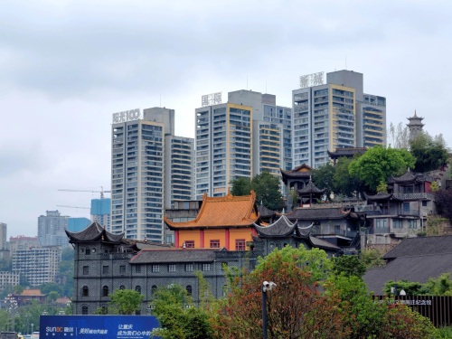 现在观景台看长江对岸的来福士