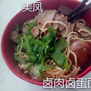 原料:面条、卤肉、卤蛋、香葱末、香芹末、蒜末、清水、盐、油、高汤、鸡精、酱油。