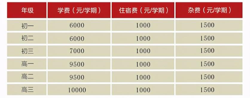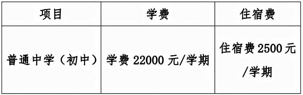 初一年级 17500 元/学期(含伙食费、住宿费)