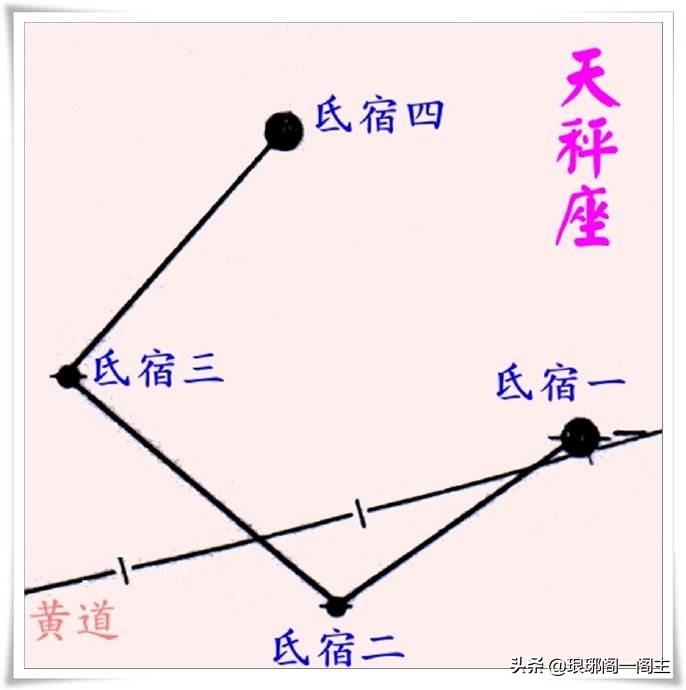 在十二宫中,氐宿属秤宫三足,蝎宫一足。此星座为天秤座。