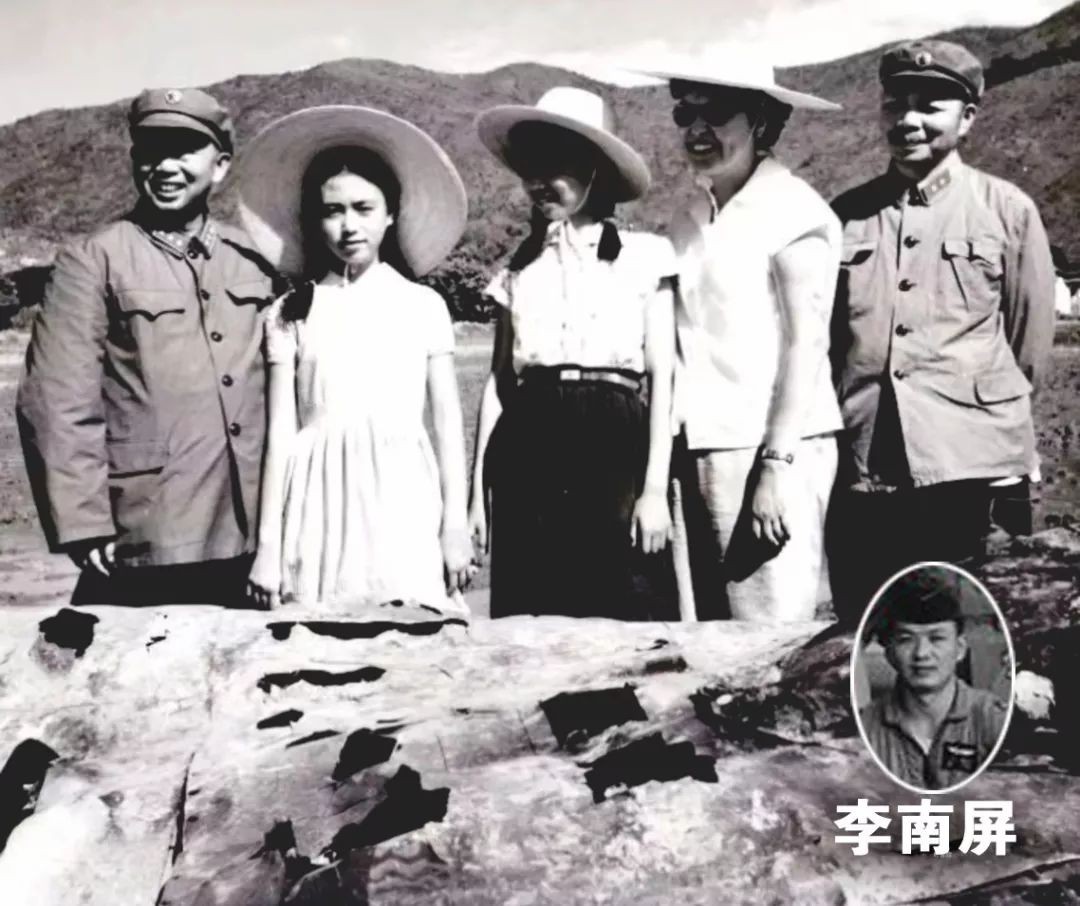 图为刘亚楼司令员在察看被击落U-2飞机残骸