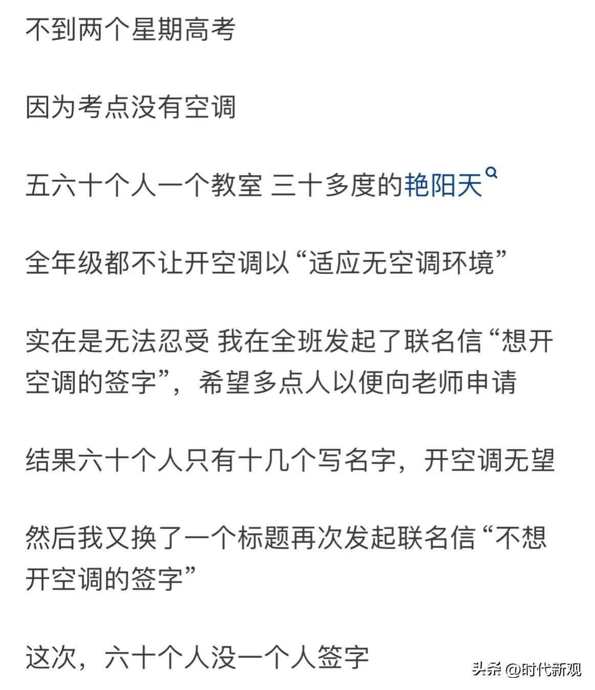 现在初中都配备空调了,还记得10年上初中那会连电风扇都没,高中的电风扇隔三差五坏,坏了就拿旧的换上,如此循环往复也不知后勤吃了多少回扣!