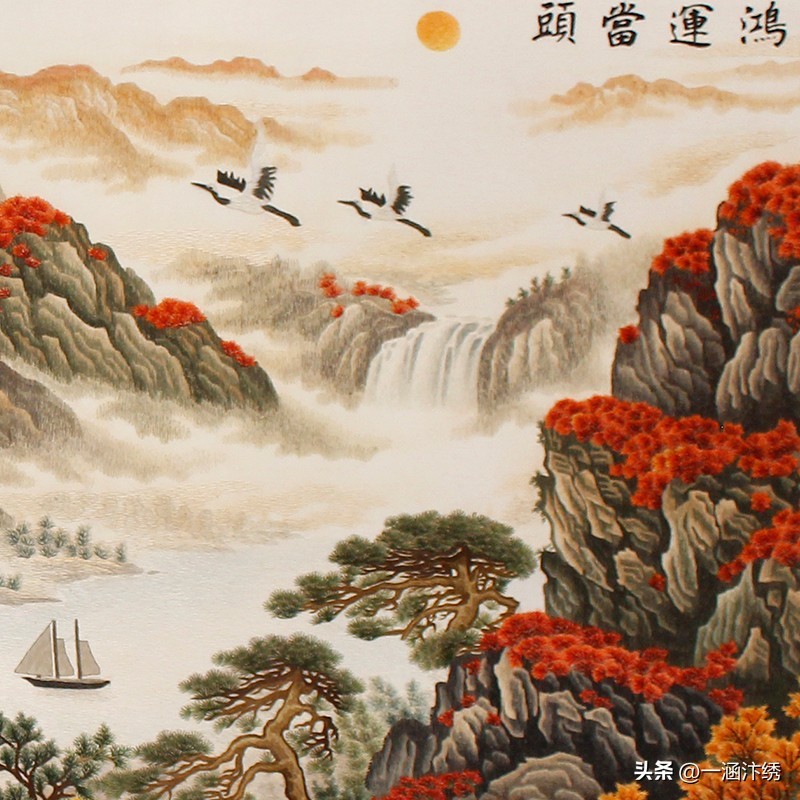 这幅手工刺绣鸿运当头山水画,以中国传统吉祥元素为主题,通过细腻的针法和丰富的色彩,绣制出山林间层林尽染、红叶满山的壮丽景象。传统文化中,山寓意着有靠山,暗示着有贵人相助,事业蒸蒸日上;水源汇流形成聚宝盆的形状,意味着财富不外流,招财聚宝。整幅作品展现出一种蓬勃向上、好运连连的美好愿景。作为乔迁礼品送公司,悬挂于公司接待区或会议室,其精致的工艺和积极的寓意,能够瞬间提升空间的整体氛围,让来访客户和员工都能感受到公司的活力与正能量。
