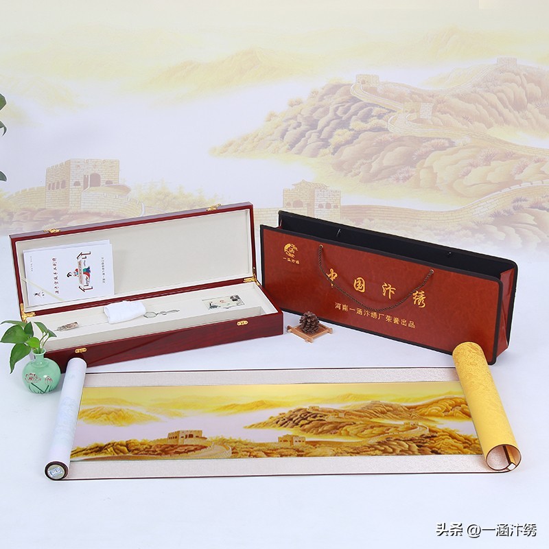 这幅手工刺绣卷轴画《金色长城》,以其独特的艺术魅力和深厚的文化底蕴,成为公司乔迁送礼的不二之选。该作以长城为创作蓝本,运用金色丝线勾勒出长城的雄伟壮丽,背景则是云雾缭绕、山水相依的自然风光,整体画面既展现了长城的坚韧不拔,又寓含了和谐共生的自然哲学。作为卷轴画,它便于收藏与展示,无论是悬挂在办公室还是会议室,都能彰显公司的宏伟志向与文化底蕴。其不仅是一份艺术品,更是对公司基业长青、不断攀登高峰的美好祝愿。