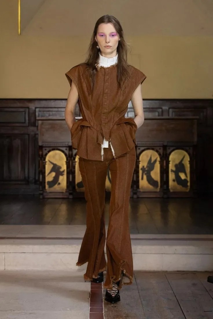 雕花,细褶,蕾丝,透视,大垫肩,窄裙,又是复古色调,把复古风描画得淋漓尽致。风格的独树一帜 ,反倒更容易识变,以及准确找到自己的介入点。