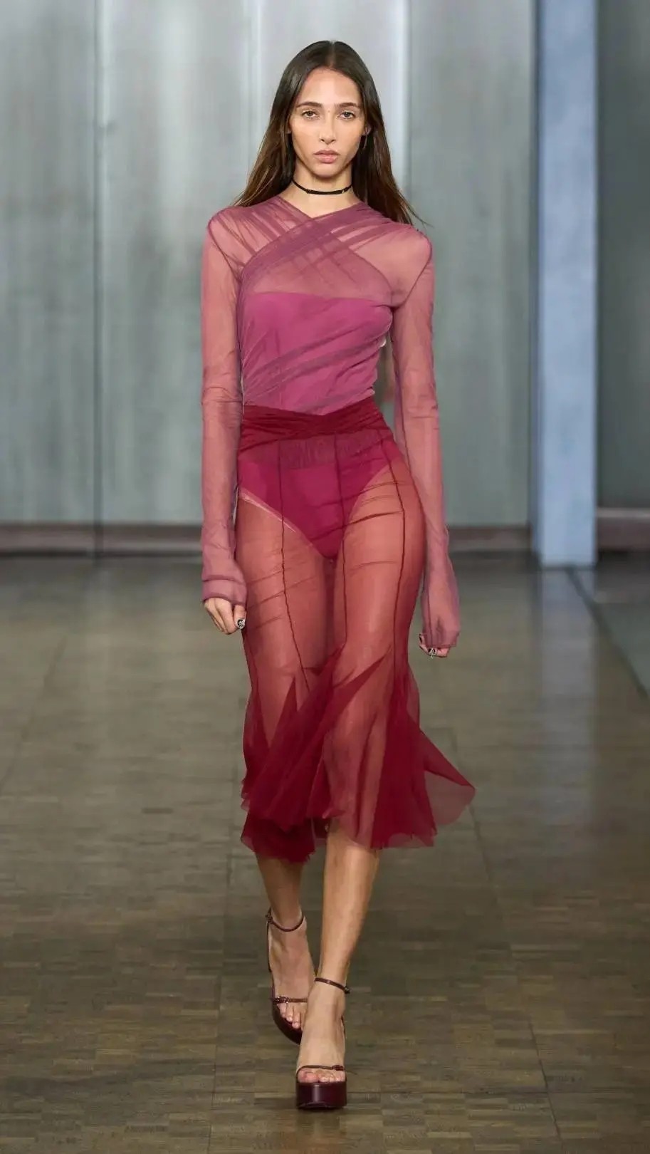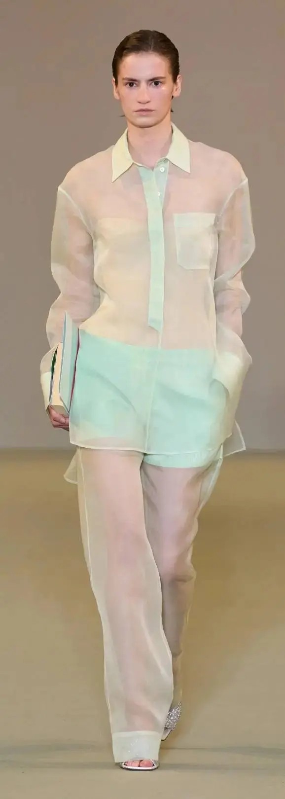 透视、网纱,此类面料在这个春夏将大放异彩。其实这些年的夏装,一直都有透视的一片天。只不过,今年的应用会更加俗常化。