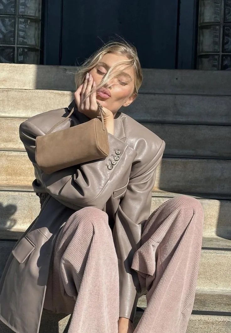 高级灰皮衣+浊粉阔腿裤,浑然一体的大气与讲究,就在洒脱与调性中透射而出。甜美?又不尽然;大气,又带着俏皮......