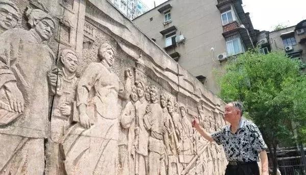 张晏生在武汉市警予中学观看烈士群像浮雕墙