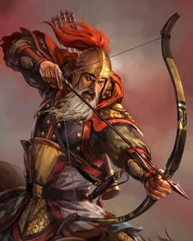 黄忠是蜀汉五虎大将之一,原为韩玄手下将,年近六旬有万夫不当之勇,弓箭射术天下无双。黄忠与前来取长沙的关羽连战三日,不分胜负。黄忠感动于关羽的义气,不忍用弓箭相伤,太守韩玄以忠战关羽不利要处斩忠,为魏延所救,投降于刘备。黄忠随刘备入西川,所到即克,战功赫赫。后又率军取汉中,定军山亲斩夏侯渊,为取汉中的第一功臣。刘备伐吴为关羽报仇,黄忠不顾年迈,请令担任先锋,为吴将马忠偷袭射中,回营后不治而亡。