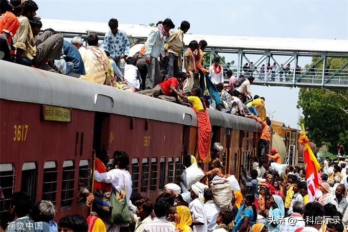 印度的铁路也是一大特色,里里外外载满了乘客,买不到站票还可以买“挂票”。