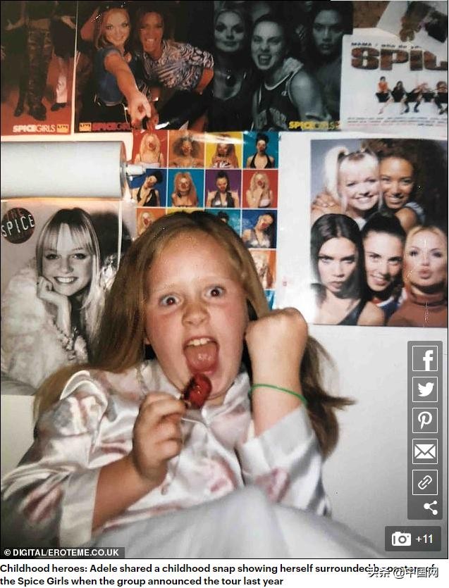 阿黛尔童年时被辣妹组合海报包围的照片 来源:DIGITAL