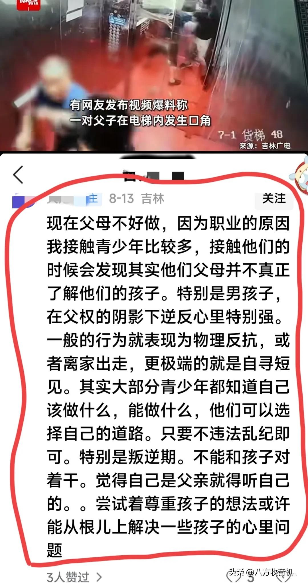 江苏父亲和儿子互殴,撞坏电梯门傻眼了,网友热议,思考亲子教育