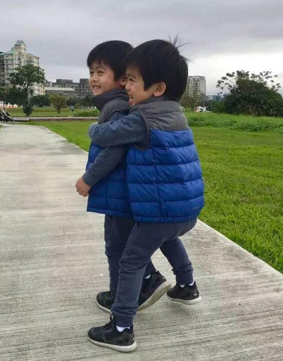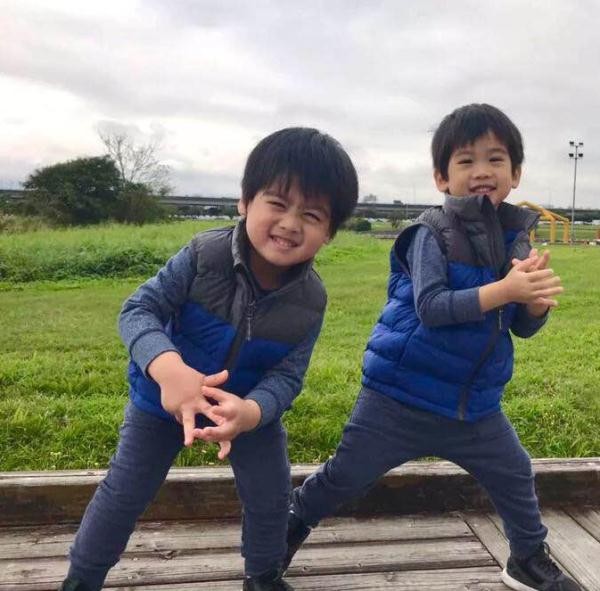 林志颖晒双胞胎儿子萌照,兄弟俩嬉笑打闹抱作一团,画面温馨有爱