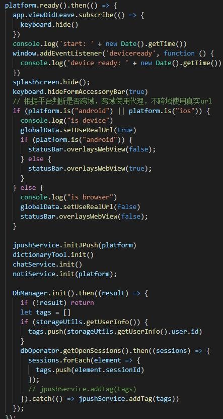 通常涉及到设备能力的初始化工作,我们放在platform.ready的回调中进行。