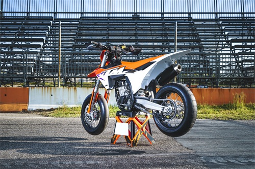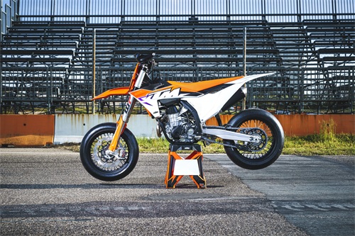 五月 31 日的时候,KTM 发布了新一代的 2023 公路越野(Supermoto,也称之为滑胎)赛车 450 SMR。