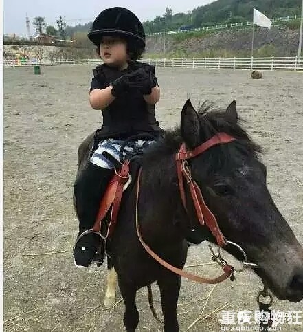 郭涛的儿子石头从小就全方面发展,奶气儿十足的时候就敢牵马了。