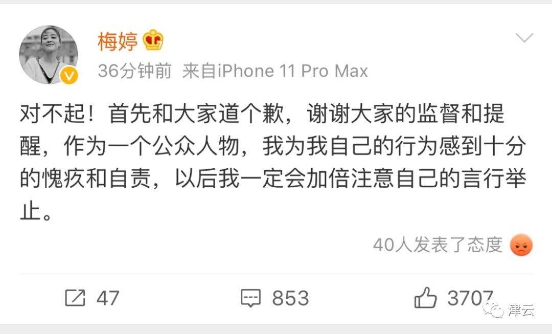 今天上午,梅婷再次发文就此事道歉。