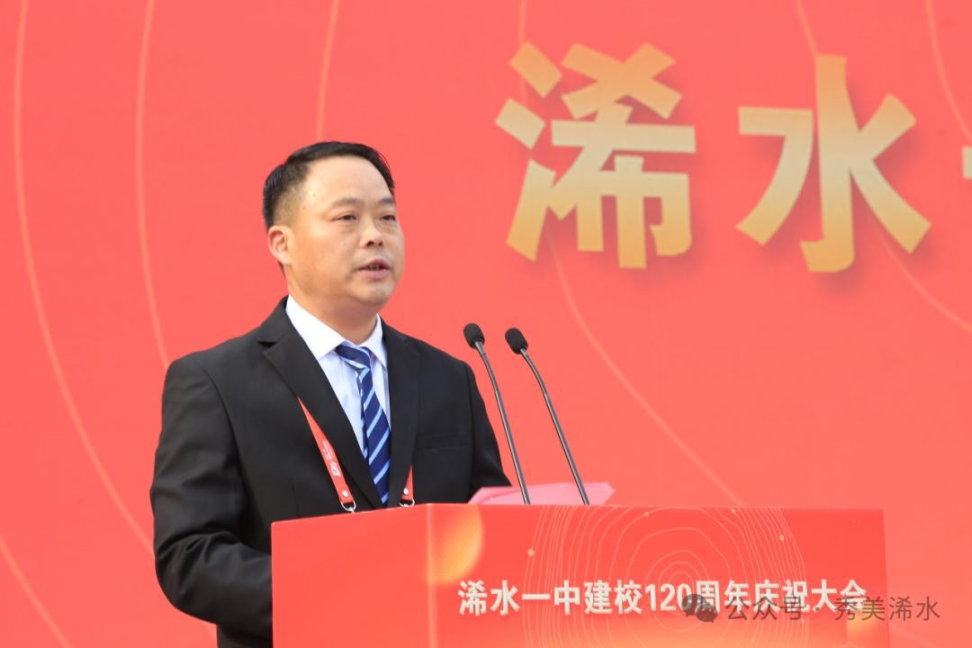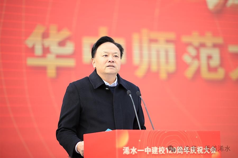 庆祝大会上,副县长徐敏代表县政府向浠水一中表示热烈的祝贺。希望浠水一中赓续文脉,坚守“为党育人、为国育才”初心使命,勇当教育教学改革先锋,全力推动教学质量迈向新高峰。希望广大教师不忘初心、潜心育人,广大学子志存高远、勤学笃行,广大校友常忆乡音、共建母校,继续为母校、家乡发展建言献策、添砖加瓦。