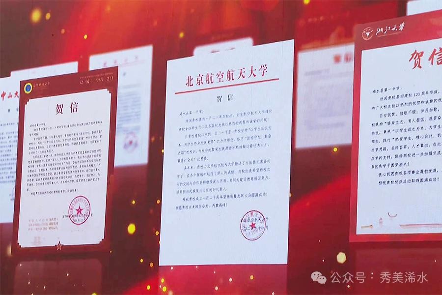 庆祝大会上播放了清华大学、北京大学等48所高校发来的贺电、贺信、贺词。浠水一中党委书记周七零汇报工作。高校代表周鹏程,浠水一中校友代表柴再希、彭湃先后致辞。