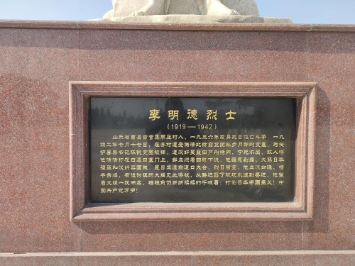 李明德,1917年12月出生,曹县古营集乡李庄村,7岁就读曹县古营集完小,1932年考入山东省立六中(现菏泽一中八一路校区),毕业后到古营集朱洪庄小学教书,1936年弃职回家投入抗日洪流,1938年,加入中国共产党。1940年,任曹县五区区委书记,1942年8月壮烈牺牲。