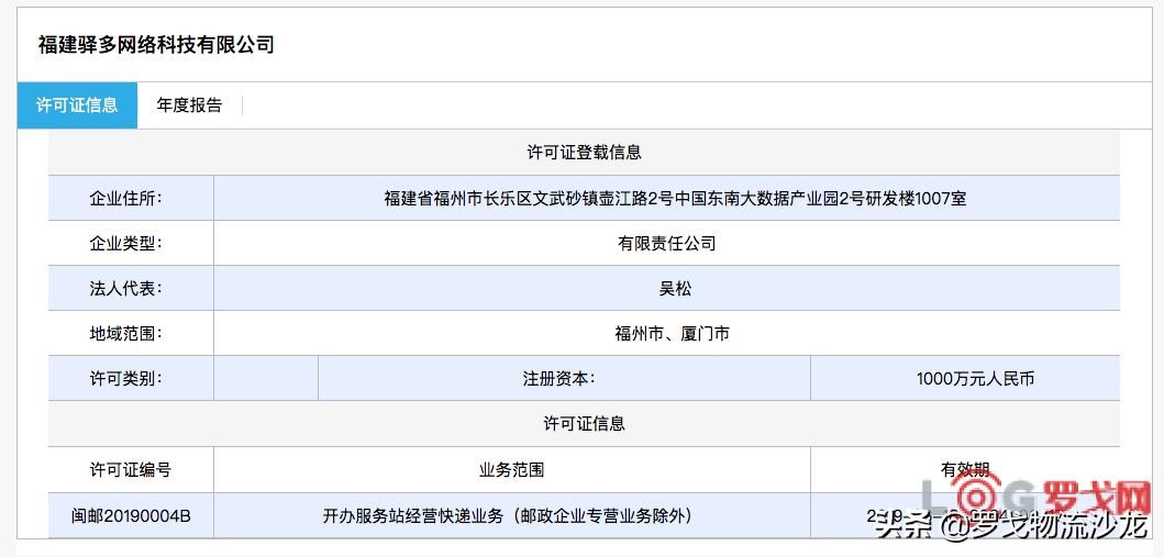去年7月时,福建驿多网络科技有限公司(即菜鸟驿站)又再次获得了福建邮政局颁发的首张专业末端收投服务新业态许可证。