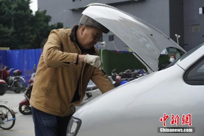 林守俊平日不时给爱车维修。彭莉芳 摄