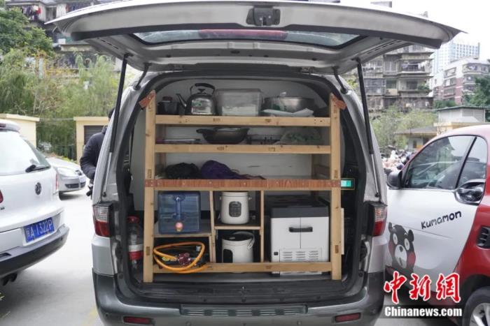 林守俊夫妇在车辆后备箱设计的“移动厨房”。 彭莉芳 摄