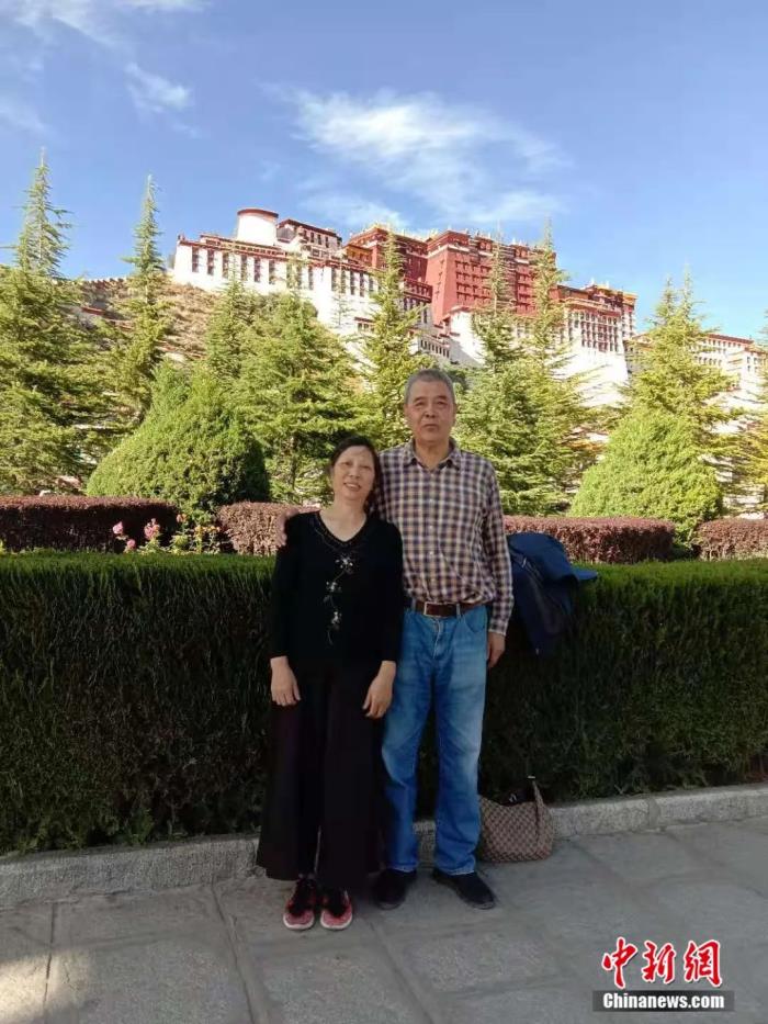 林守俊夫妇站在蓝天下与布达拉宫合影。受访者 供图