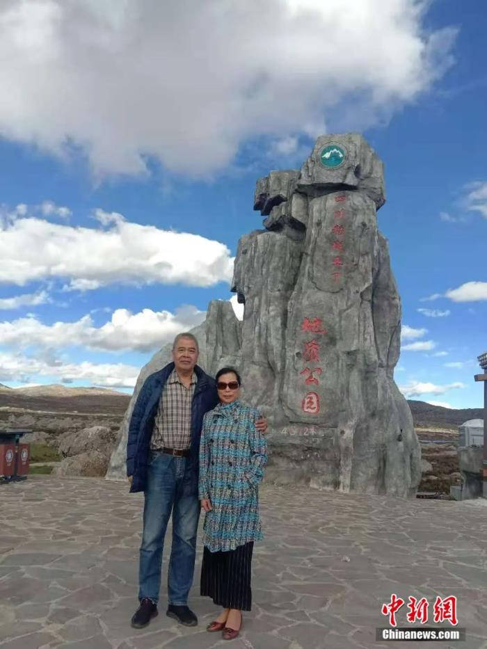 林守俊夫妇在四川稻城亚丁地址公园合影。受访者 供图