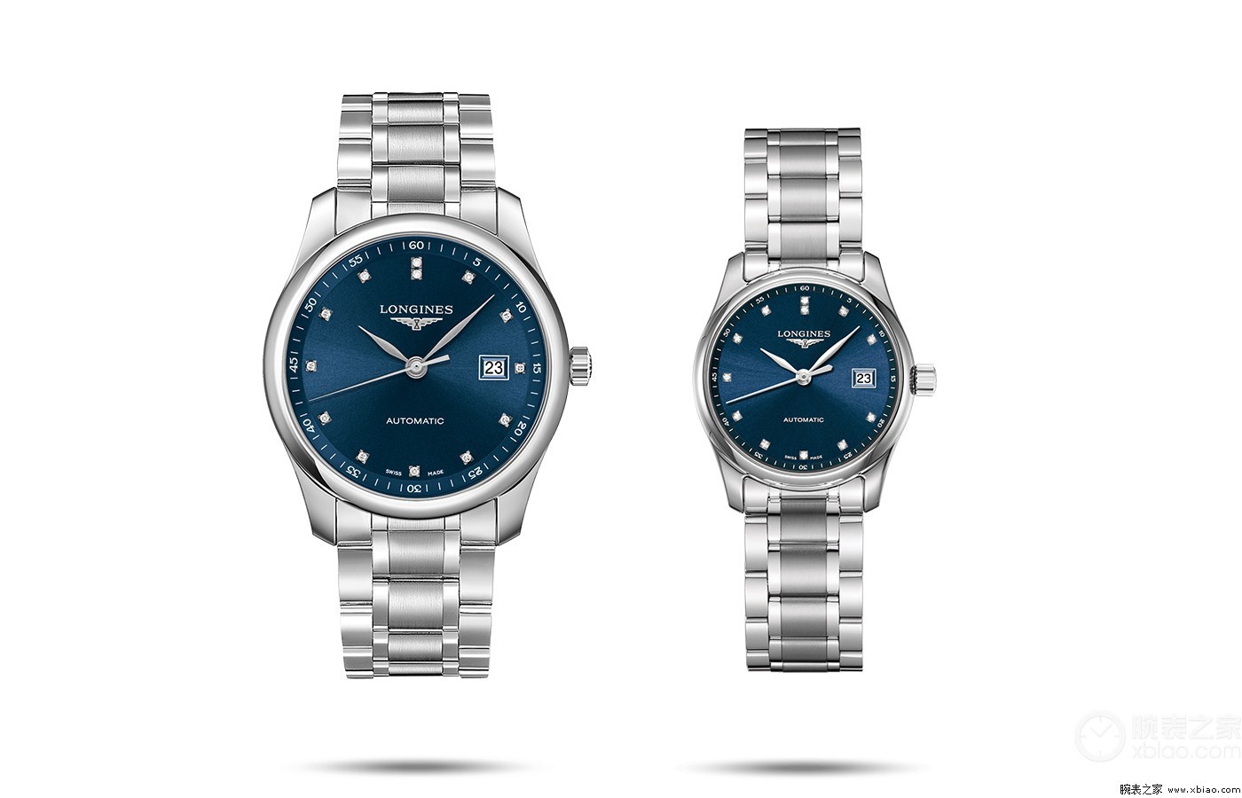 这对浪琴表名匠系列腕表兼具优雅的风格与卓越的工艺,镀银指针搭配蓝色太阳纹表盘,日期显示窗口位于3时位置,配备精钢表链及三折式安全表扣和按压式开启装置。直径29毫米的女表搭载L592自动上链机械机芯,拥有40小时动能储备。直径40毫米的表壳搭载L888自动上链机械机芯,表款拥有64小时动能储备。