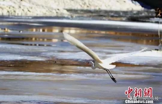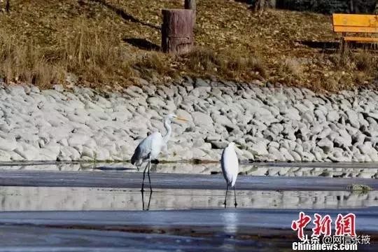 野生大白鹭,被发现在甘肃张掖市肃南裕固族自治县裕固的风情园内“闲庭信步”。