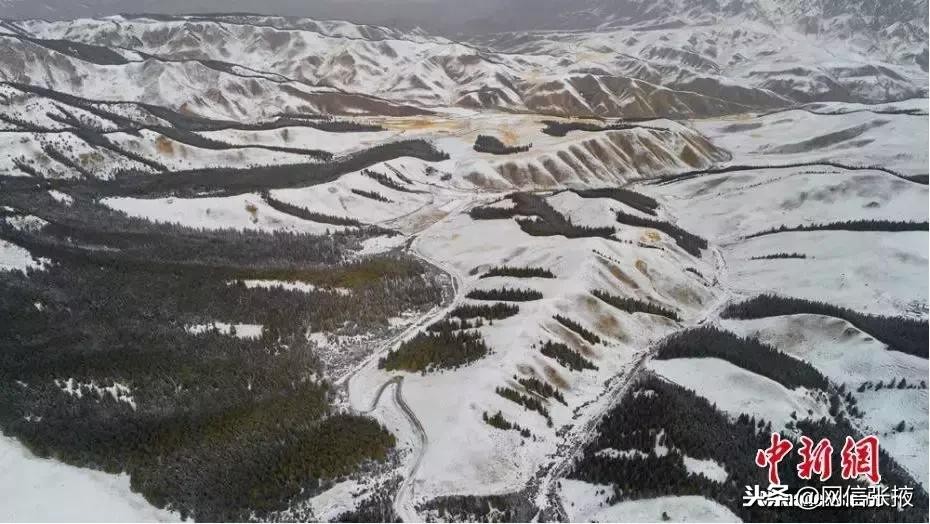 祁连山下,山丹军马场呈现最美“雪域秋景图”。