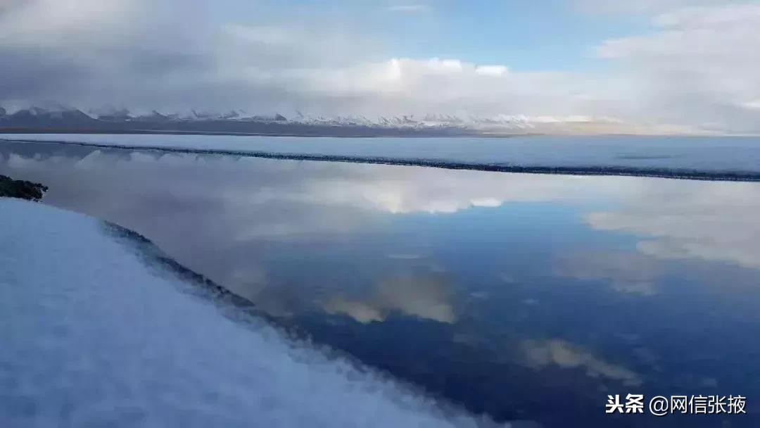 宛如镜面的翡翠湖。从祁连山流下的河水携带着各种盐和矿物质,至柴达木盆地后,或受阻成湖,或蒸发下渗,由于没有水循环,水蒸发后留下盐,在南麓形成许多盐湖。