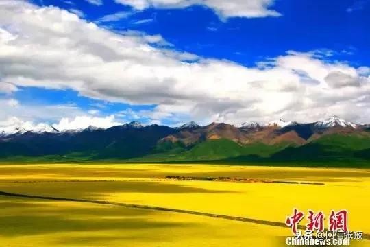 青海门源,头顶玉带的百里油菜花海。 图片来源:青海省旅发委