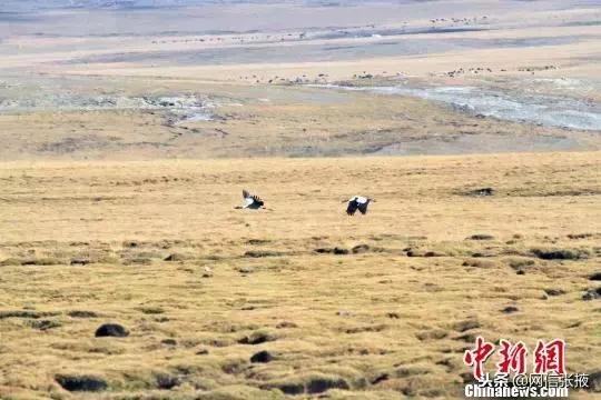 祁连山南麓青海侧湿地拍摄到的黑颈鹤。 图片来源:青海省雪联青藏高原自然保护中心