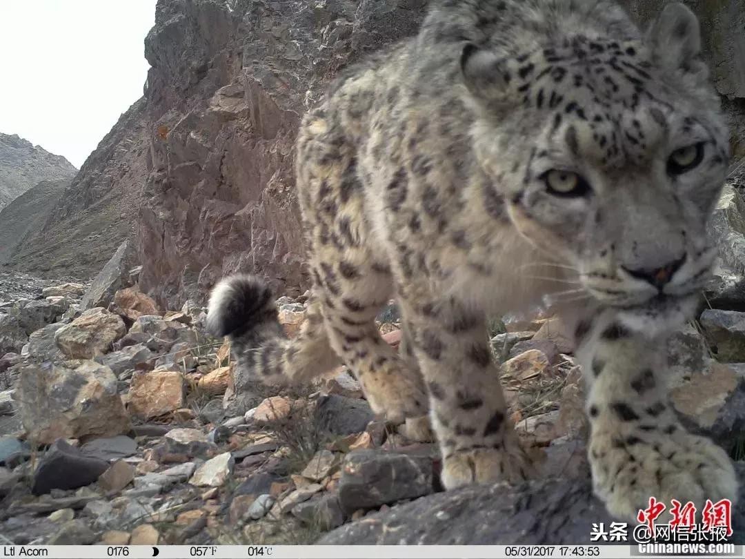 雪豹,祁连山区最具代表性的珍稀保护动物。山区面积辽阔,雪豹可以向各个方向自由迁移,有利于丰富不同区域种群的遗传多样性。据了解,2017年祁连山国家公园(青海片区)内布设红外相机154台中,37台相机记录到雪豹照片及视频251条。