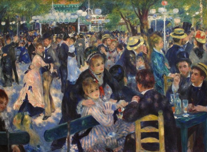藏品的历史背景和来源:《红磨坊的舞会》是法国印象派油画家雷诺阿于1876年创作的一幅名作,现收藏于法国巴黎奥塞美术馆。这幅画作被认为是雷诺阿灿烂青春的纪念碑,也给后来的画家如毕加索、杜菲等带来了灵感和启示。