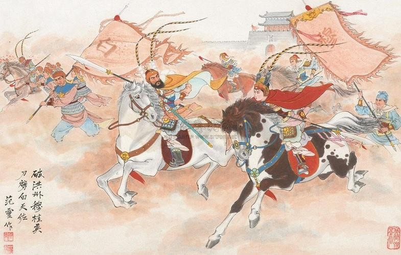 3.穆桂英挂帅西征,大小二十一员女将,各领千军万马,浩浩荡荡,声势浩大,气势磅礴。她们的任务就是在前方冲锋陷阵,保家卫国。