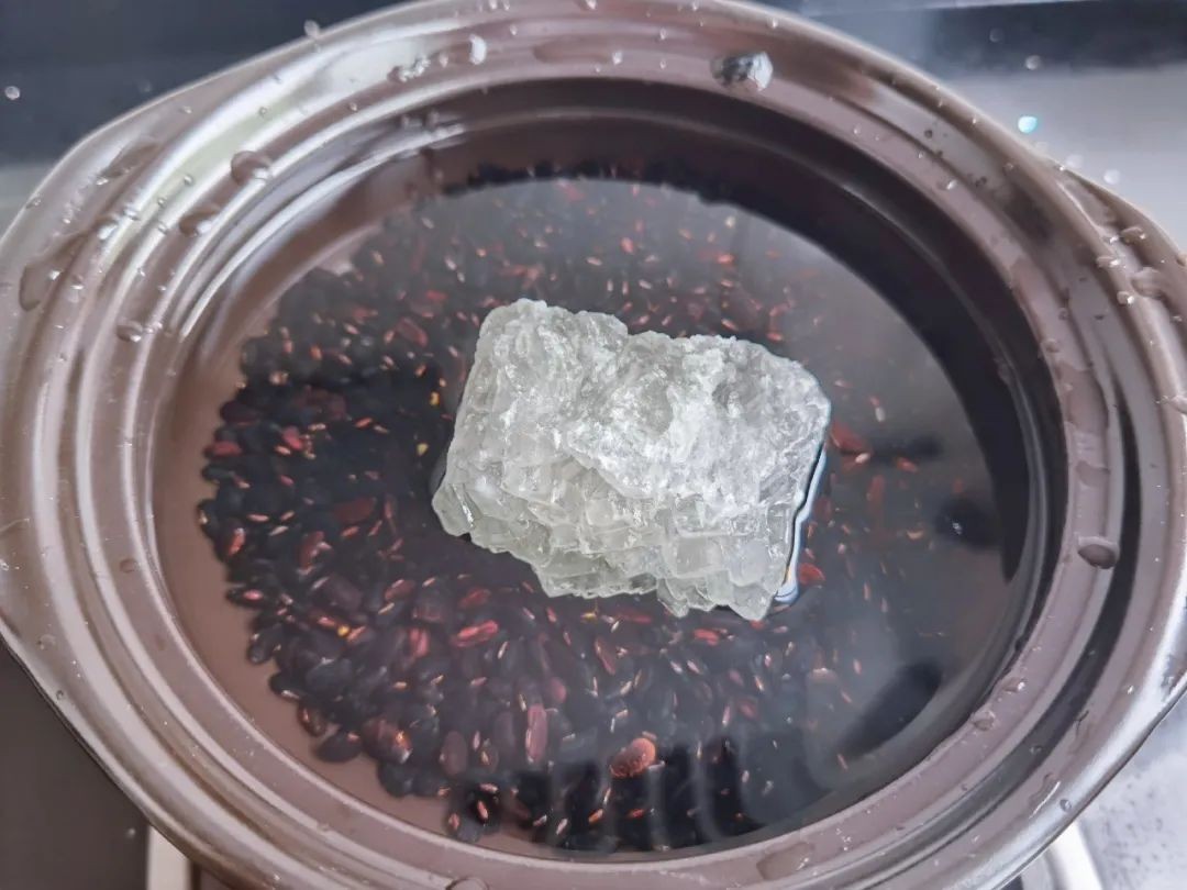 将黑豆洗净后放入一个砂锅内,加入清水、冰糖和生抽,如果家里有小苏打的话,可以加点小苏打,它能让豆子更柔软,但是不加也关系不大。