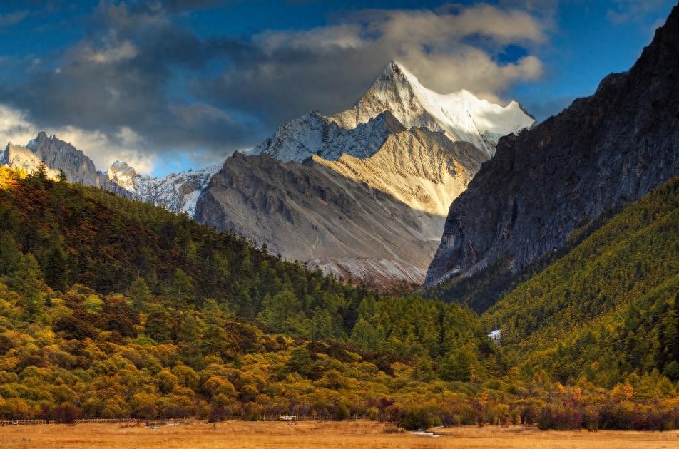 它位于甘孜藏族自治州,四川西南部位置,西藏、云南与之相邻。东经的度数为99度-100度,北纬的度数是28度,隶属于横断山脉。海报的高度跨度很大,2900米到6032米,特殊的地理位置也给他创造了独特的景观,是国内保存超级完整的生态景区。