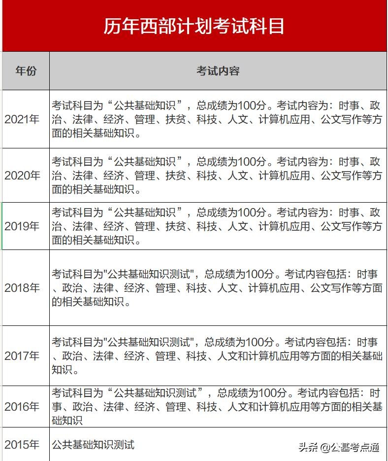 2021年西部计划考试考什么内容,各地考试科目一样吗