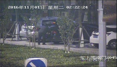 犯罪嫌疑人正在肆意乱翻被盗车辆的后备厢。 警方供图