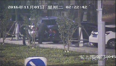 新京报讯 (记者李禹潼)凌晨时分,两名戴口罩的男子闯入通州一小区监控探头监控范围,10秒钟后,探头内,停放在树影里的黑色轿车车灯闪了一下,巡控人员觉得情况可疑,将探头拉近,隐隐可见有人在黑色轿车后备厢翻找物品。十多分钟后,两口罩男双手背在身后,被民警带出树影,押上警车。