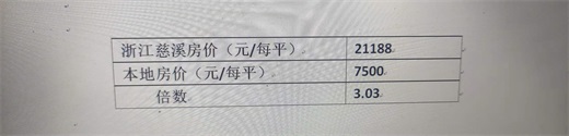 我县城房价均7500元每平;成老师所在的慈溪是隶属宁波的一个县级市,房价均21188元起,是我们的3.03倍。